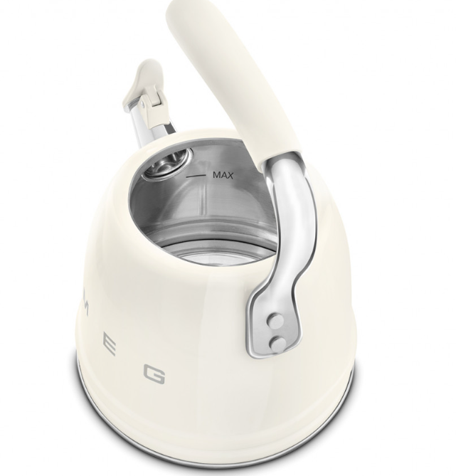 Чайник Smeg CKLW2001CR со свистком — это воплощение стиля и функциональности, вдохновленное эстетикой 50-х годов. Этот прибор станет ярким акцентом на вашей кухне, благодаря своему кремовому цвету и изящной форме. Корпус прибора выполнен из нержавеющей стали, что гарантирует его долговечность и устойчивость к коррозии.