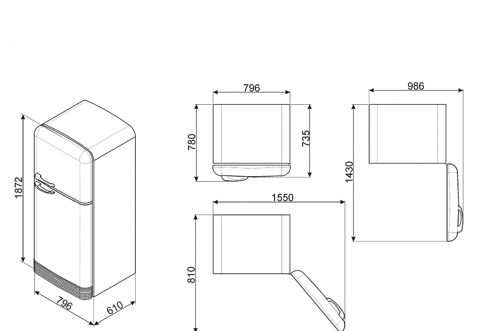 Иконический ряд Smeg FAB совмещает дьявольски хорошие взгляды с высокопроизводительной технологией. С красивейшими смелейшими отделками и мягкими круглыми кривыми напоминающими конструкции 1950's ретро, много вариантов цвета и 7 вариантов размера, от ультра просторного FAB50 вниз к миниатюрным пропорциям минибара FAB5, но также судомоек, кранов, экстракторов и малых приборов, которые нужно сопрягать.