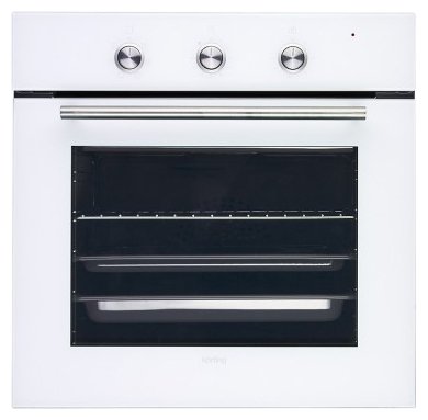 Духовой шкаф, 6 режимов нагрева, механический таймер, утапливаемые ручки, объем духовки 60 л, 2-слойное остекление, каталитическая самоочистка, автоматическое отключение, в комплекте: глубокий противень, противень для выпечки и хромированная решетка, цвет: белое стекло.