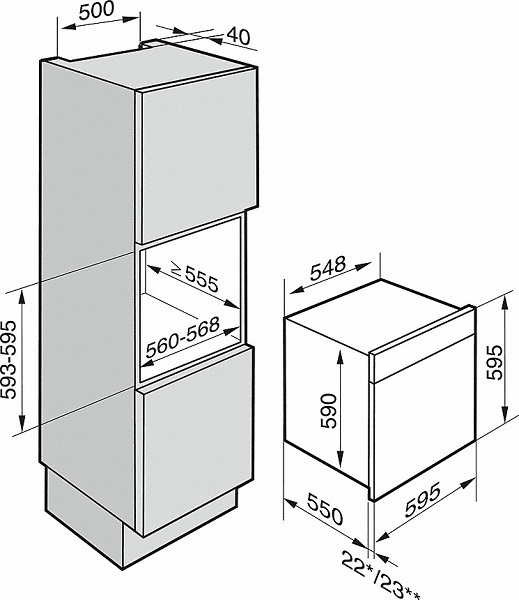 | Размеры ниши (ШхВхГ), мм | 560-568х600х555 |