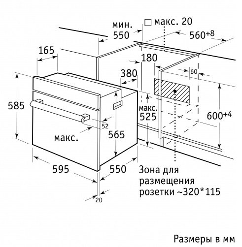 | Ширина встраивания | до 60 см |