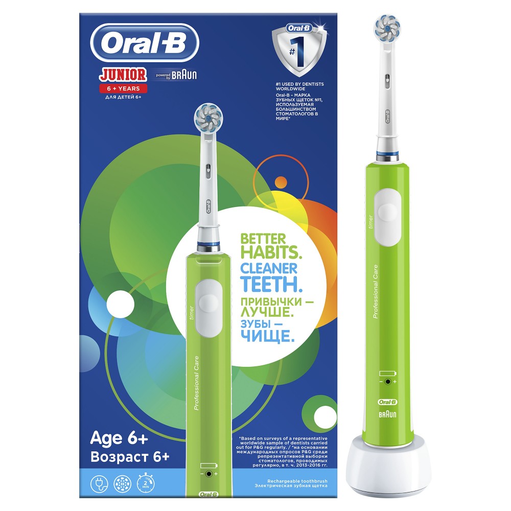 BRAUN Oral-B Junior проста в использовании - работает только в 1-ом режиме чистки. В щетку встроен двухминутный таймер, позволяющий соблюдать рекомендуемое стоматологами для чистки время: короткий прерывающийся вибросигнал через каждые 30 секунд напоминает вам о необходимости равномерной чистки каждого квадранта полости рта, более долгий прерывающийся вибросигнал извещает вас о том, что рекомендуемые стоматологами 2 минуты чистки подошли к концу.