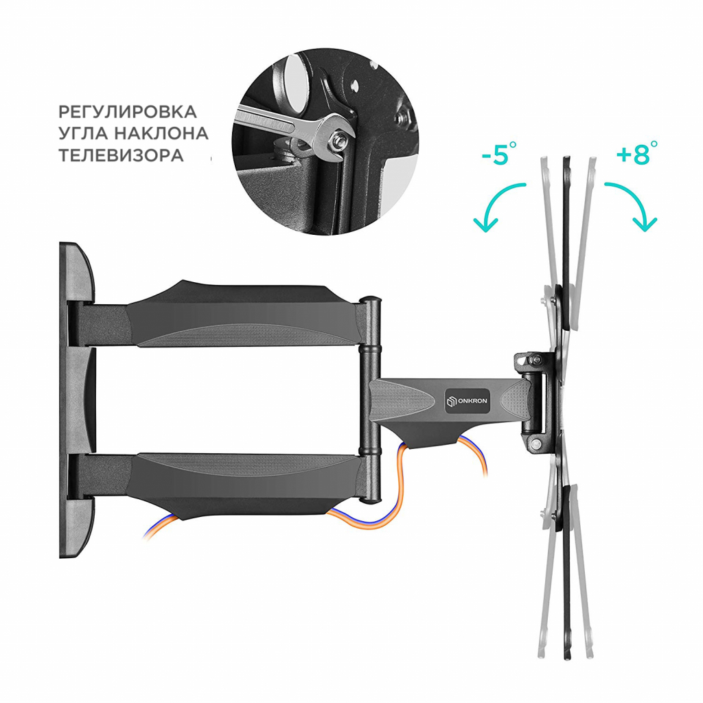 Настенный наклонно-поворотный кронштейн ONKRON NP40 в черном цвете предназначен для дисплеев с диагональю от 32 до 65 дюймов (81,28 - 165,1 см).
