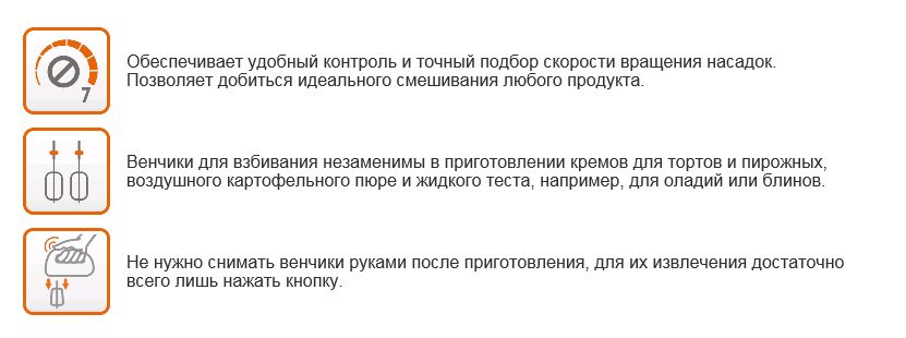 | Насадки | 2 венчика для взбивания яиц и крема |