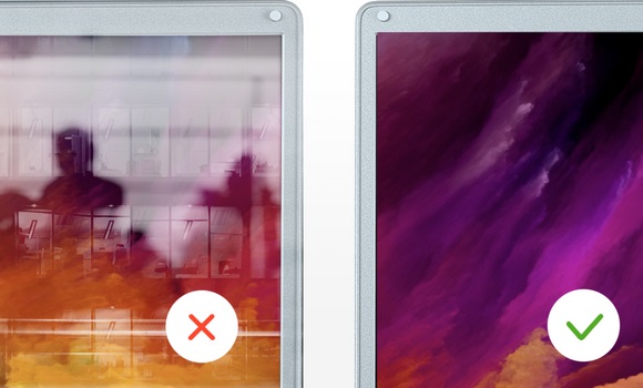 Экран устройства имеет матовую поверхность и меньше бликует — это позволяет комфортно работать без усталости глаз как на солнце, так и при искусственном освещении.