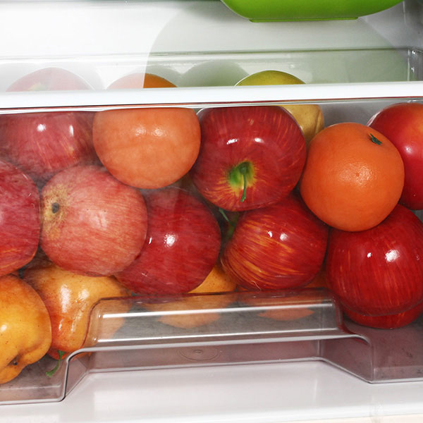 Внутри холодильного отделения расположены 1 стеклянная, 2 металлические полки и 1 ящик для фруктов и овощей. Размораживается отделение капельным способом. Внутри холодильник освещается при помощи лампы. На перевешиваемой двери имеется 4 полки. Упрощенный доступ к замороженным продуктам обеспечен верхним низкотемпературным отделением.