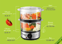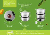 | Материал паровых корзин | прозрачный пластик |