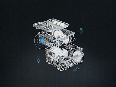 Свобода действий Мы усовершенствовали поддон для столовых приборов: теперь в нём можно размещать и небольшие предметы, например чашки для эспрессо. Поддон 3D MultiFlex1 имеет углублённую центральную и две боковых секции. Левую секцию можно сдвинуть вправо, чтобы освободить место бокалам для вина в верхнем коробе. Глубину правой секции можно регулировать, чтобы без труда разместить крупные столовые приборы и мелкую посуду. |