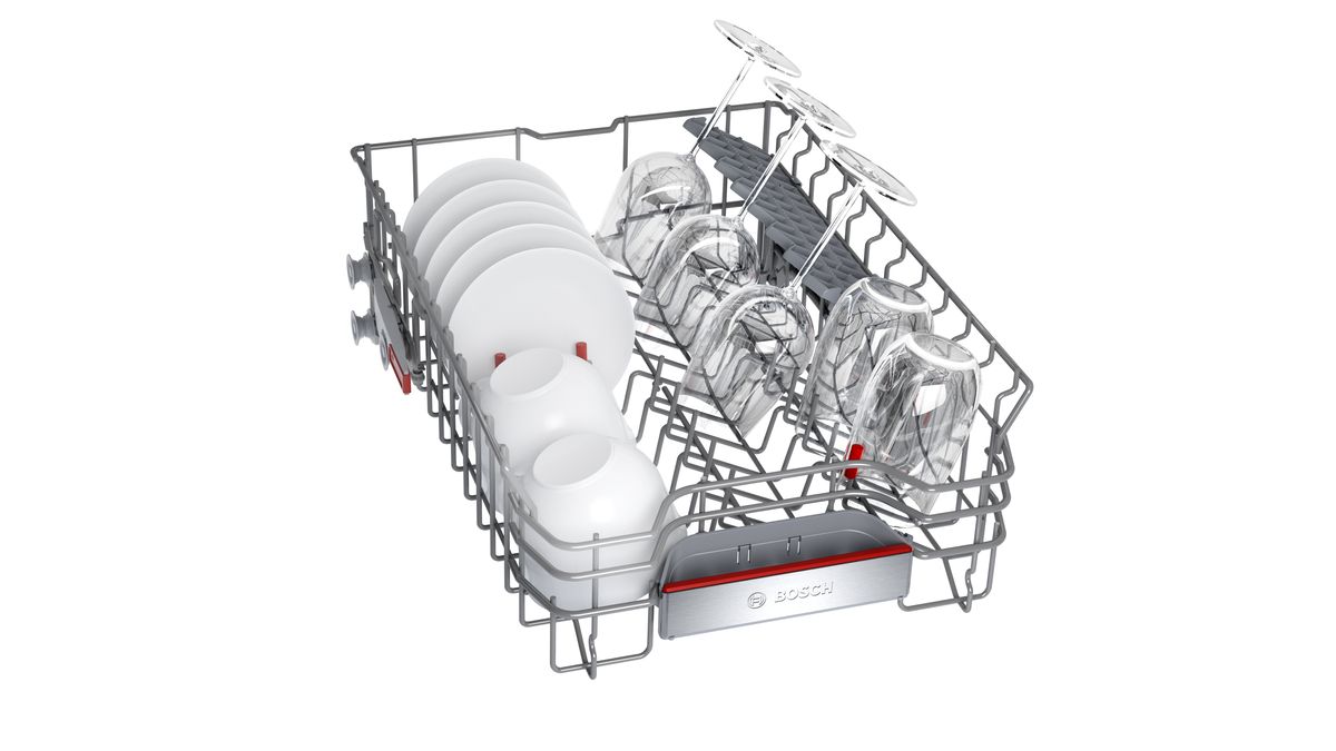 Встраиваемая узкая посудомоечная машина cбережет драгоценное время и поместится даже на небольшой кухне. Пять уровней распределения воды обеспечат превосходный результат мытья.