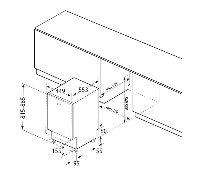 | Размеры ниши (ВхШхГ), см | 82-87х45х55.5 |