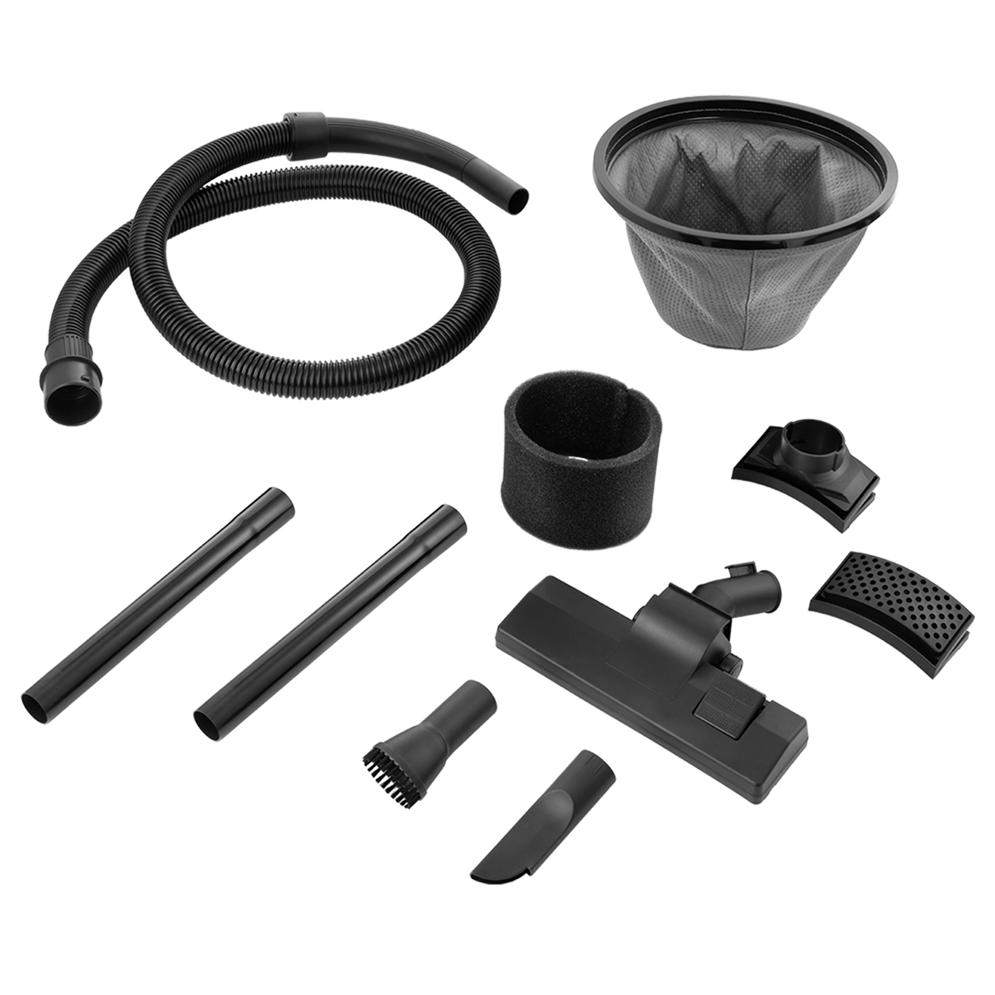 В комплекте идут все стандартные аксессуары: гибкий шланг, удлинительные трубки, щетка для пола с переключателем пол/ковер, насадки.