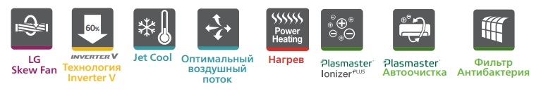 | Дополнительные режимы | ночной режим / турбо режим / режим вентиляции / автоматический режим / ионизация воздуха / режим осушения |