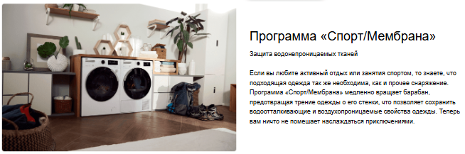 | Программы | антиаллергия, бережная, загруженная программа, отжим+слив, полоскание, пух, рубашки, синтетика, спорт/мембрана, темное белье/джинсы, удаление пятен, хлопок, хлопок эко, шерсть/ручная стирка, экспресс |