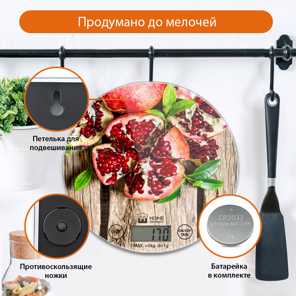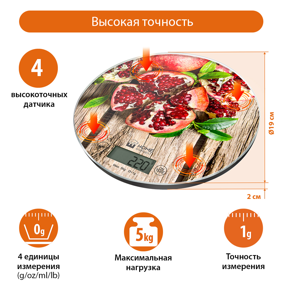 Весы электронные для кухни Home-Element HE-SC933 сочный гранат