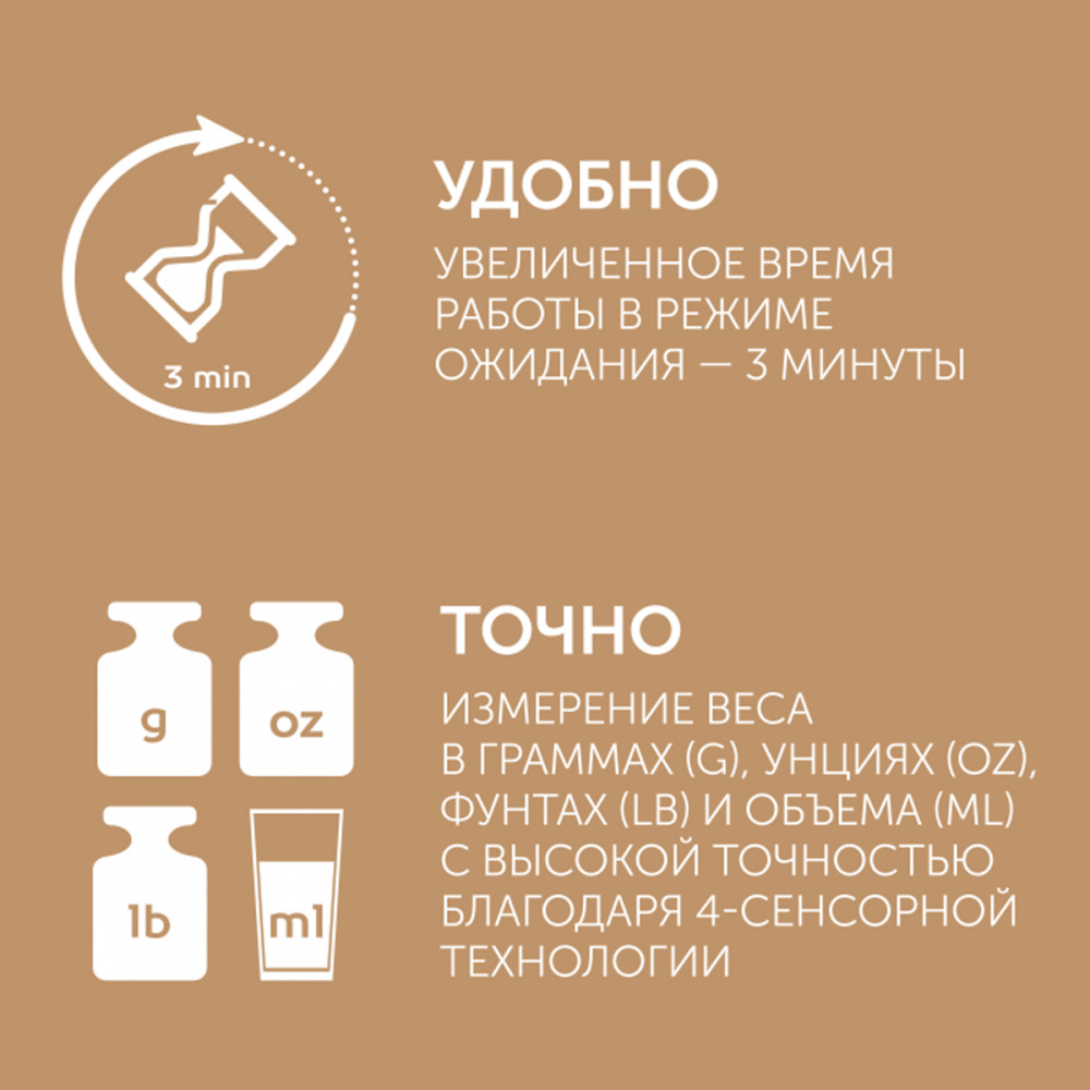 Кухонные весы Scarlett SC-KS57P59 измеряют вес с высокой точностью, благодаря 4-cенсорной технологии. Шаг измерения в 1 грамм позволяет использовать их для взвешивания специй, соли и других подобных ингредиентов. Платформа изготовлена из ударопрочного стекла. Весы могут измерять не только вес продуктов, но и объём воды или молока – для выбора этого режима достаточно нажать кнопку на тыльной стороне весов. Функция последовательного взвешивания облегчает приготовление блюд со сложными рецептами.