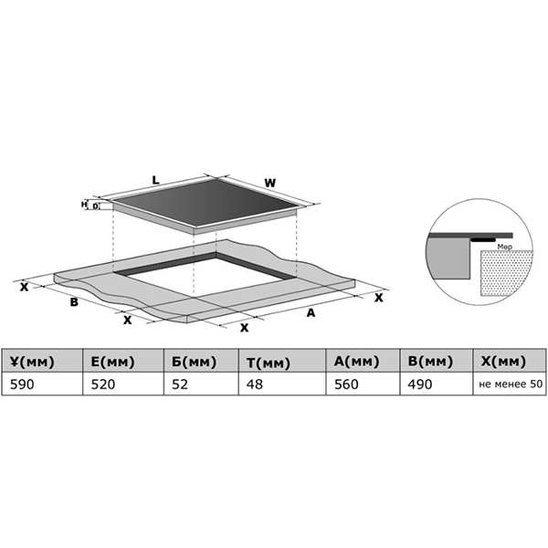| Ширина встраивания, см | 60 |