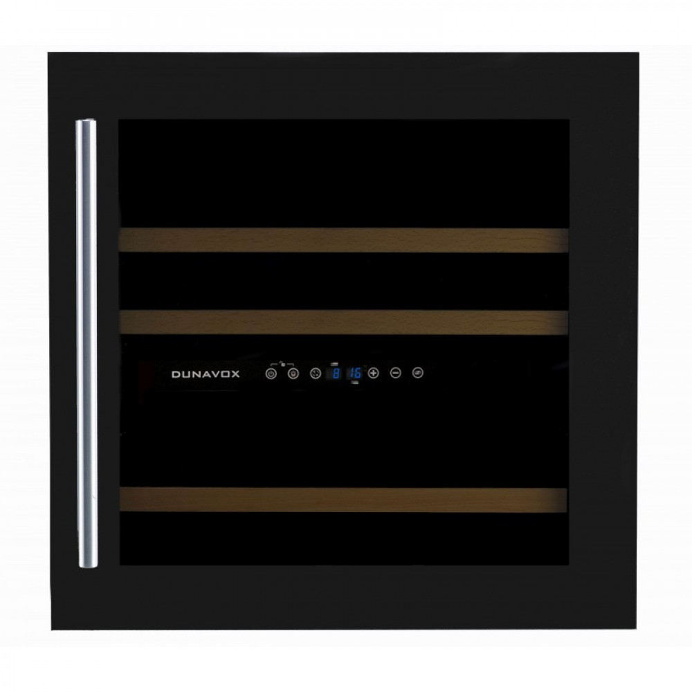Корпус модели DAB-36.80DB металлический с покрытием черного цвета, дверца выполнена из прозрачного двойного стеклопакета, защищенного от воздействия ультрафиолетовых лучей. Ручка двери удобная, накладная, выполнена из нержавеющей стали. Цифровой индикатор температуры и внутреннее освещение на светодиодах синего цвета. Винный шкаф Dunavox DAB-36.80DB предназначен для встраивания в нишу. Для обеспечения охлаждения компрессора и отвода горячего воздуха необходимо предусмотреть сквозную вентиляционную нишу площадью не менее 200 см² от цоколя до верхней части мебельного модуля.